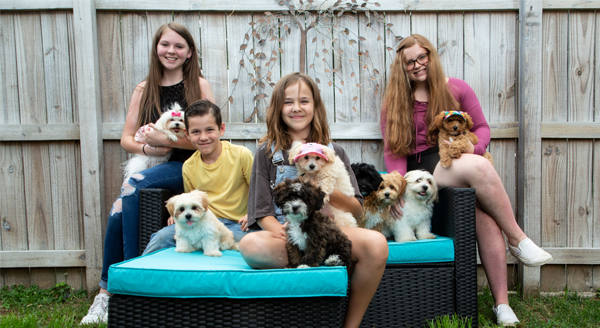 Our Family Teddy Bears weigh between 5 – 10 lbs as adults, are non-shedding, hypoallergenic puppies who adore their families. Under our Family Teddy Bears “Umbrella” we have Shichon, Zuchon, Bichpoo, Poochon, Maltichon, Maltipoo, Maltichon, Maltipoochon, Shihpoo, Cavapoochon, Lhasapoo, Pomapoo and Daisy Dog puppies.